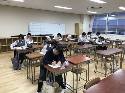 3年生にとって英検は推薦入試などにも関係してくるので、自習室監督の私もつい力が入りましたが、自習室にいる生徒は真剣に自分の課題に取り組んでいました。静かな受験に協力してくれてありがとうございました。