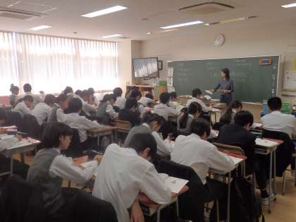 1年生の授業の様子です。テスト前日なので、いつも以上に集中している様子が感じられます。(田村真)