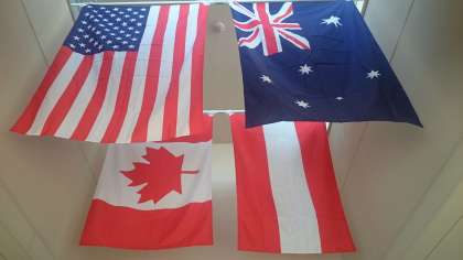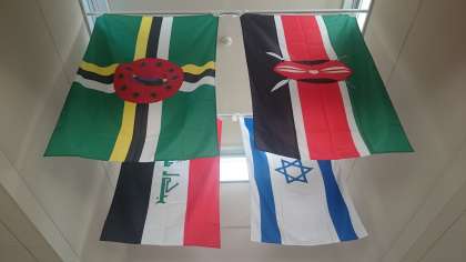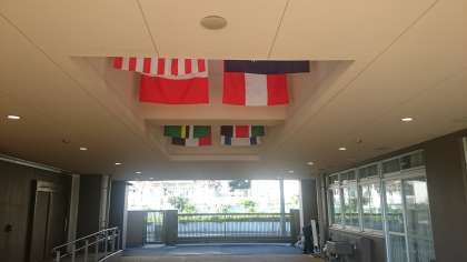 本校がおともだちとなる国の国旗を正門の近くにある天窓に飾りました。