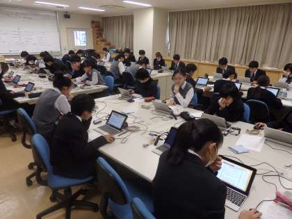 本日、1年生の教科「日本語」の授業ではパソコン室で職業についての調べ学習を行いました。初めてのタブレットを使用した授業で、生徒達は熱心に作業に取り組んでいました。(田村真)