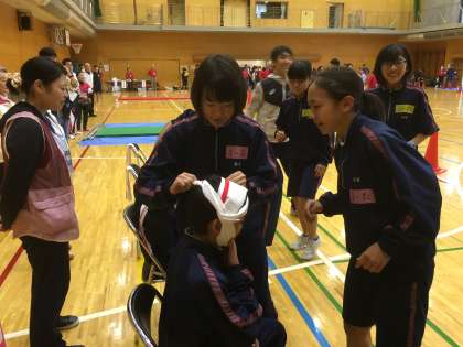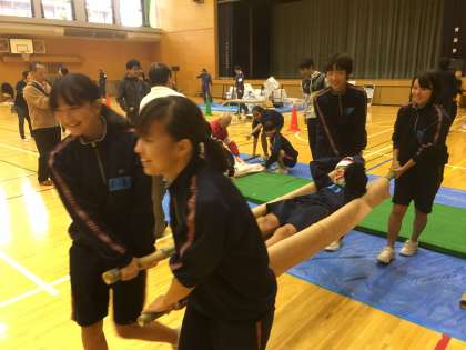 陸上競技部、ソフトテニス部が防災運動会に参加しています。