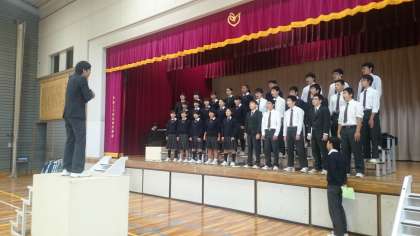 体育館では、3年生が大きな口を開けて、よい声を響かせていました。