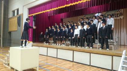 今朝の体育館は2年生でした。口の大きさをしっかりと意識していました。