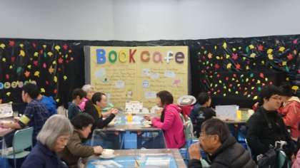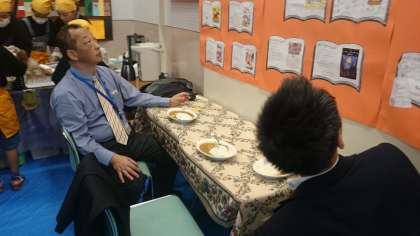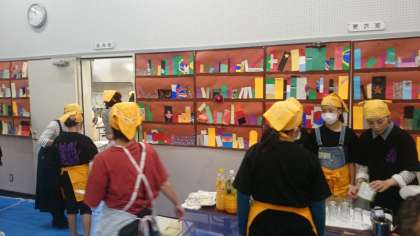 ブックカフェでは、子どもぶんか村ボランティアくらぶに参加している生徒たち、児童たちがお店を切り盛りしていました。