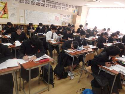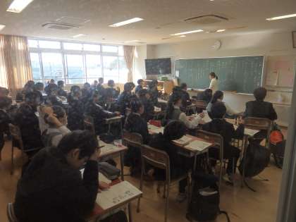 1年生、道徳の授業の様子です。それぞれのクラスで生徒たちは自分の考えをまとめています。今週は土曜まで6日間ありますので、集中してどの授業にも取り組み、期末考査に備えて下さい。(田村真)