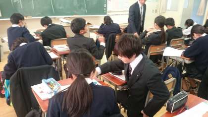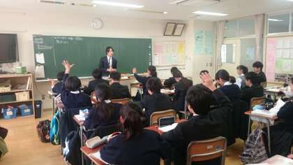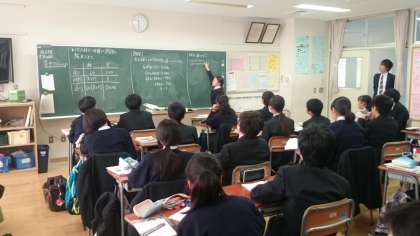 本日の2年次の数学の先生が1年生で研究授業を行いました。