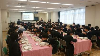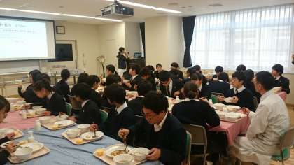 栄養士さんのメニュー解説を聞きながら、おいしくいただきました。