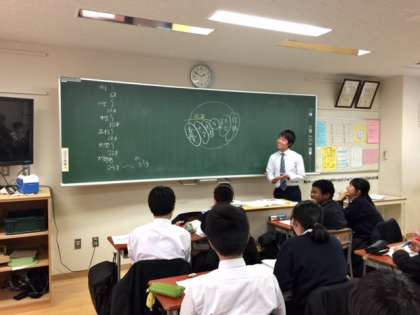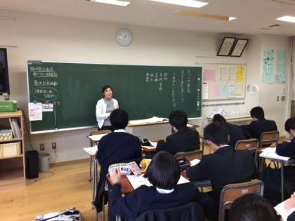 1年生のキャリア学習の授業です。「自分がどのように生きていくか」ということについて考えていきます。各担任の先生が、自分の経験も交え、互いの考えを共有しながら授業を進めています。(大居)