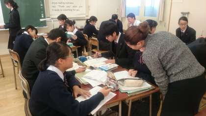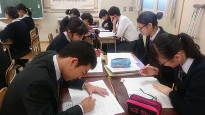 グループで自作の英作文を共有しながら、よりよい作文になるようアドバイスや話し合いを行いました。