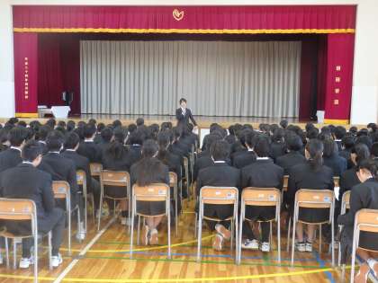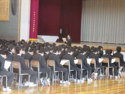 本日1校時、1年生は横浜校外学習の全体オリエンテーションを体育館で行いました。校外学習への取り組みを通じての成長、見学候補地の説明など実行委員を中心に説明を行いました。各係分担の仕事、コース決め、事前・事後学習など具体的な取り組みがこれから始まりますが、1つ1つがんばっていきましょう。(田村真)