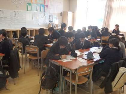 本日5校時、1年生は横浜校外学習のコース決めを行いました。どのクラスも、コース係や班長を中心に、積極的に取り組んでいました。(田村真)