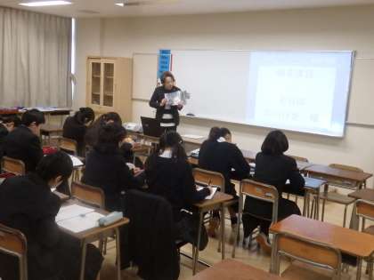 介護福祉士、美容師、キッズダンス講師の先生方の授業の様子です。それぞれの先生方の仕事に対する思い、実際の仕事内容など普段の授業ではなかなか知り得ないことをお話していただきました。(田村真)