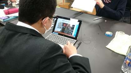 その結果をその場でプレゼンを作成し、ネットと大型ディスプレイを活用し、クラス全体に発表していました。