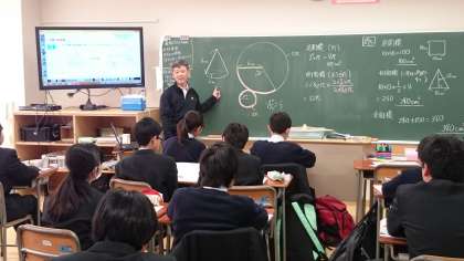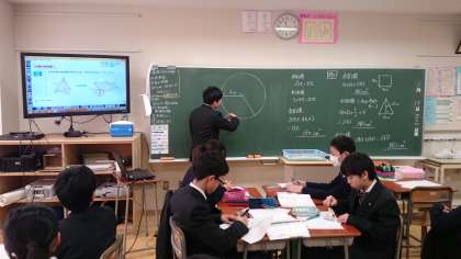 1年生の数学の授業では、円錐の表面積について学習していました。