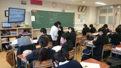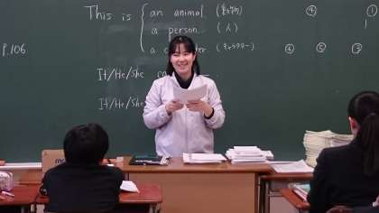 英語による人物、動物、キャラクターについてのクイズを生徒が考え、
