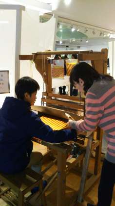 シルク博物館で、歴史や製造行程を学んだり、機織り体験をしたりしています。