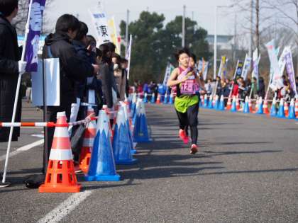 世田谷区が現在10位です。各校の強豪が襷を繋いで頑張っています。本校の生徒も全力を出しての奮闘しています。画像は残り500メートルの地点です。
