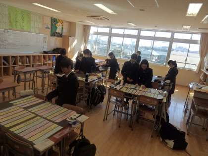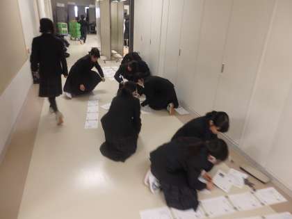 展示発表会の準備の様子です。明日からの展示に向け、展示委員や教科係がよくがんばっています。(田村真)
