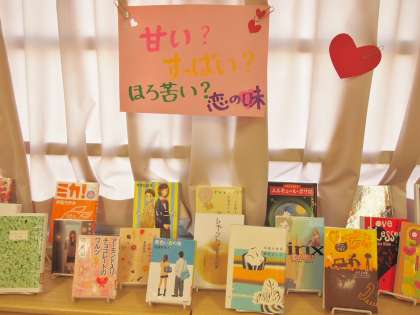 船橋希望中図書室の入り口には「今日は〇〇の日」という札が置いてあり、その日にちなんだ本を紹介をするコーナーを設けてあります。今日2月14日は「バレンタインデー」でした。そこで図書室に入ると、バレンタインデーにちなんだ特設コーナーがあり、図書館司書の方が‘厳選’した本がならんでいます。ここに立ち寄ると毎日が楽しくなるような雰囲気作りをしてくださっているのが今のフナキボ図書室です。