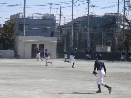 野球部は本日、校庭で紅白戦を行っています。顧問の川口先生もランナーコーチを行っています。昨日の練習試合も含め、試合形式の練習を多く入れています。春の世田谷区大会もがんばってください。(田村真)