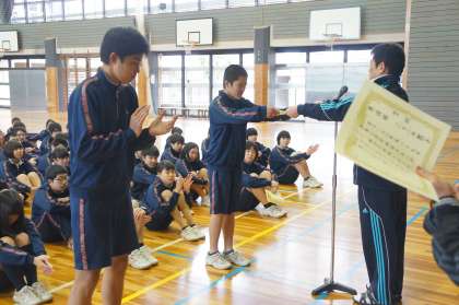 女子バレーは5組が優勝し、男子ドッヂは3組が優勝しました。