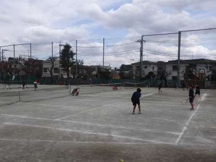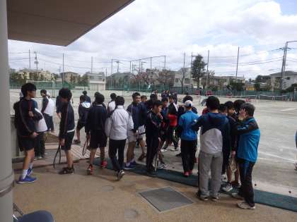 午後は硬式テニス部の3年生送別試合です。ダブルスのトーナメント戦に向け、先生方も準備をしています。(田村真)