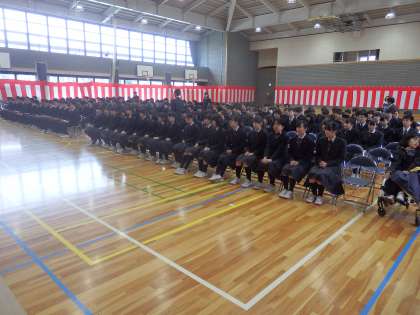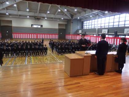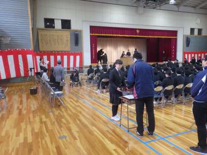 先日の卒業式予行後、今日は3年生の最後の卒業式練習です。呼名練習では3年生全体から緊張感を感じることができました。明日の本番もおおいに期待しています。(田村真)