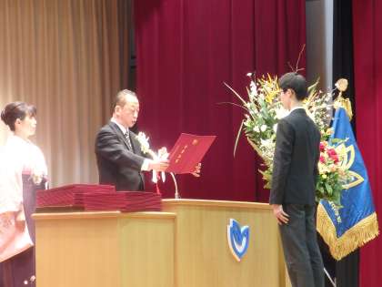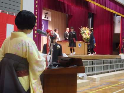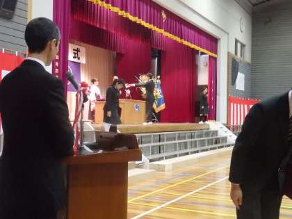 1,2,3組の卒業証書授与の様子です。一人一人が立派に、船橋希望中学校の誇りを胸に証書をもらっています。(田村真)
