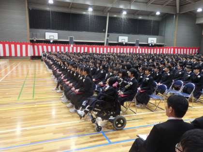 さて、卒業生のみなさん。「中学校の全課程を修了したことを証する」という卒業証書を手にした今の気持ちはどうですか。入学以来その卒業証書を皆さんが手にするまでに費やした授業時間は、およそ4000時間にもなります。放課後の委員会や部活動で暗くなるまで頑張った時間、土日の試合や夏休みなどの練習時間を入れると8000時間に達する人もいます。