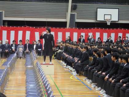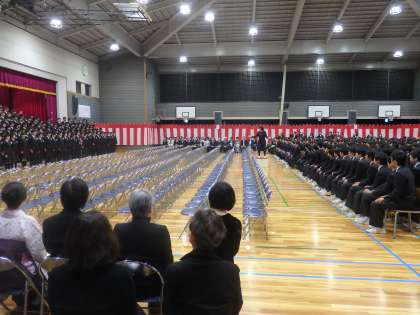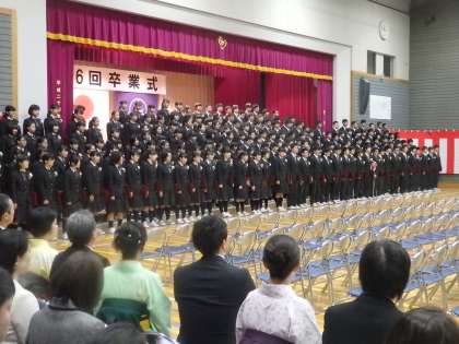 いよいよ卒業式も終わりに近づきました。「この地球のどこかで」の合唱を3年生と1,2年生が一緒に歌う様子です。いま、まさに伝統のバトンをつないでいると感じられます。(田村真)