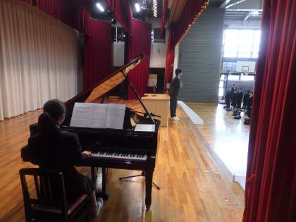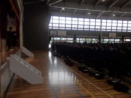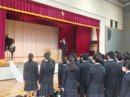 校歌斉唱では、7期生と8期生の歌声が体育館に響きました。入学式では新たに9期生が仲間入りします。7期生を中心に新たなフナキボがスタートしました。(田村真)