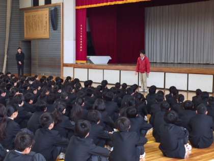 いよいよ中学校での生活が本格的に始まりますした。みんな顔を上げ、熱心に話を聞いています。