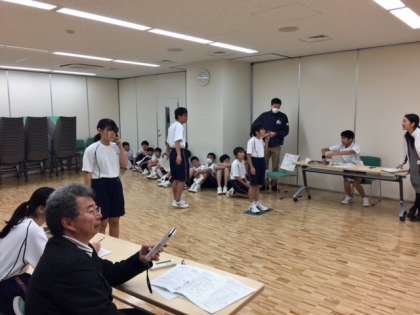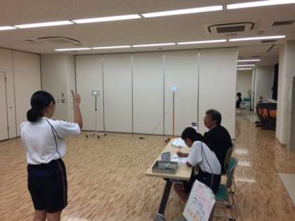 全校生徒の身体計測が行われています。写真は視力検査の様子です。(大居)