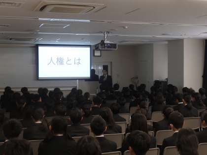 本日2校時、1年生は学年主任の山本先生による全体道徳を行いました。道徳とは何か、人権とは何か、学校や社会で必要な多くのことを学びました。ぜひ、1年生の皆さんも普段の生活で意識して下さい。(田村真)