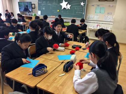 クラス目標の飾りつけの様子です。班ごとに紙で花を作っていました。廊下からガラス越しに覗いていたら、元気よくあいさつをしてくれました。(大居)