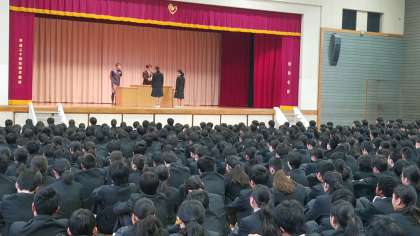 本日は生徒会朝礼が行われました。各委員会の新しい委員長が挨拶を行いましたが、新しい取り組みや決意についてたくさん聞くことができましたね。今週もフレッシュな気持ちで頑張っていきましょう!