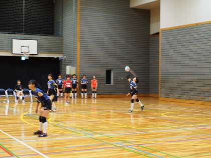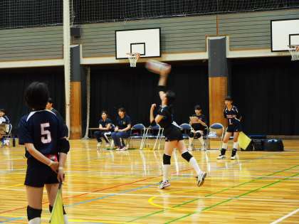 バレーボールの試合はサーブが入ることがまず大切ですが、船橋希望中の生徒たちは次々によいコースにサーブを決めていました。