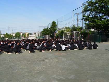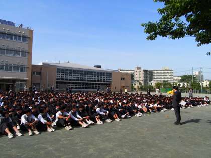 給食室からの火災を想定しての避難訓練です。5分ちょっとで避難完了。校庭に集まってからは、注意されることなくスッと全員が静かになりましたが、それまでの話し声について副校長先生から指摘を受けました。次回の訓練では、全員がおしゃべりすることなく校庭に降りてきてください。フナキボ生ならできます!