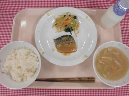 「さばのみそ煮」は、脂ののったさばをねぎとしょうがを入れたみそだれでじっくりやわらかく煮込みました。味がしみて白いご飯によく合う献立です!