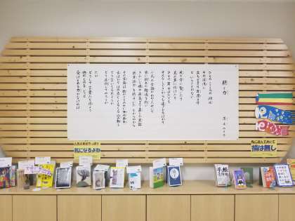 図書室前の掲示板では、五月に相応しい詩を貼り出しています。また、かわいい鯉のぼりも一緒に貼ってあります。オススメの本も並べてあるので、ぜひ読書に活用しましょう。