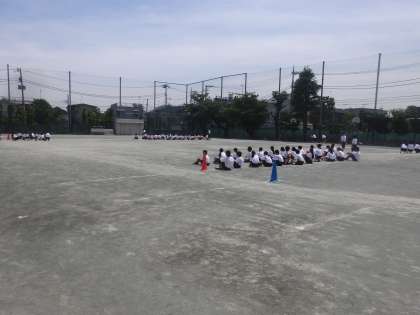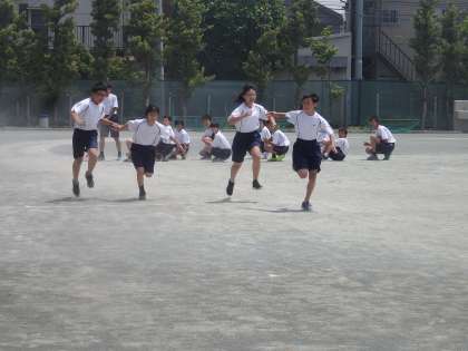 1年生の体育では、初めて全員リレーの練習を行いました。バトンパスやテイクオーバーゾーンの確認をし、各クラス精一杯頑張っていました。(田村真)