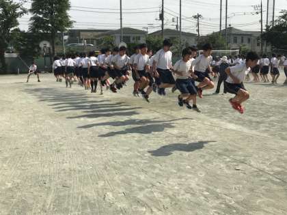 放課後に3年生が大縄の練習をしました。掛け声がクラス毎に特色あっておもしろく、その掛け声に合わせてテンポよく跳んでいました。