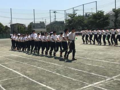 ムカデ競争ではたった一人でもずれてしまうと動きが止まってしまいます。そうならないように、全員が「1、2、1、2」と声を出して、動きを合わせます。