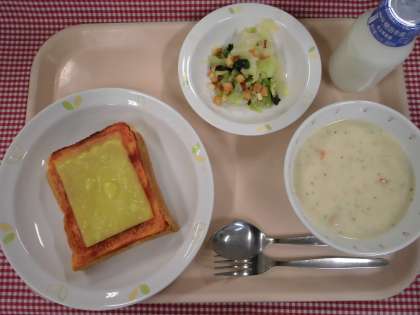 「ハムチーズトースト」は、食パンにケチャップを塗って、ハムとチーズをのせて焼きました。