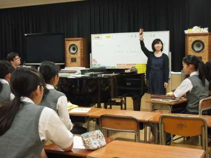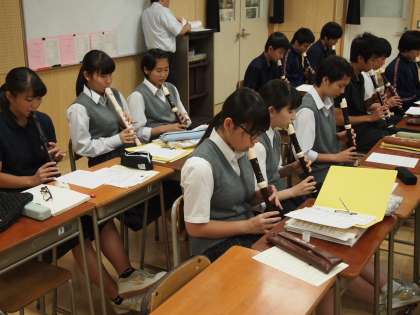 音楽鑑賞から始まり、発声、そしてリコーダまでバランスよく学んでいます。特に男子はこの年齢だと発声練習は「恥ずかしい」気持ちが先に立ち、発声練習では声が出ないことが多いものですが、さすがフナキボ3年生。しっかり口を開け声を出しています。最後は秋の学芸発表会の課題曲を鑑賞。何人かの生徒は、歌いたくてウズウズしていました。
