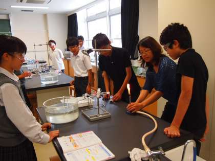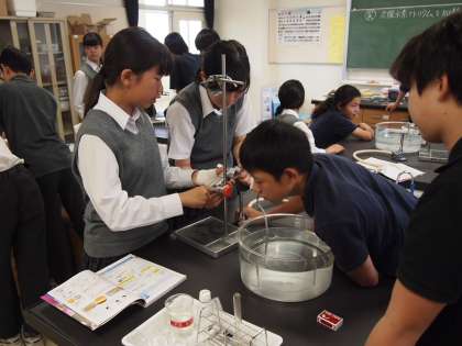 今日の理科は、「水酸化ナトリュウムを加熱して出てくる気体を調べる」実験です。実験はとにかく安全に行うことが最優先。手順と注意を確認してから始めました。