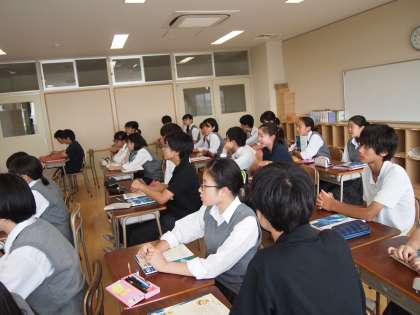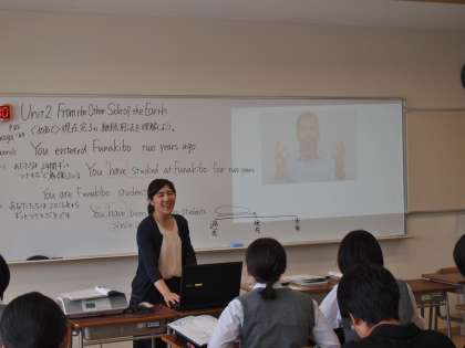 授業の後半では、有名な日本住む外国人や海外で活躍する日本人を画像で紹介し、具体的数字の例をあげて継続用法を学びます。このクラスでは先生も生徒も笑顔で明るく、楽しみながら授業が進んでいました。