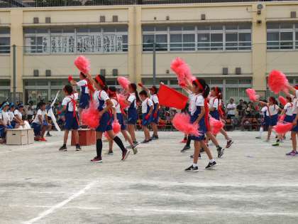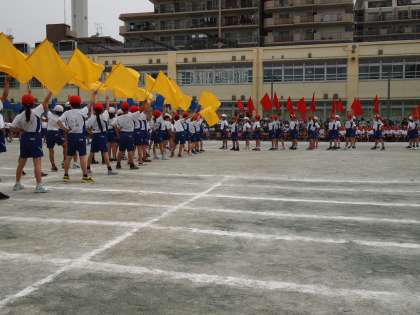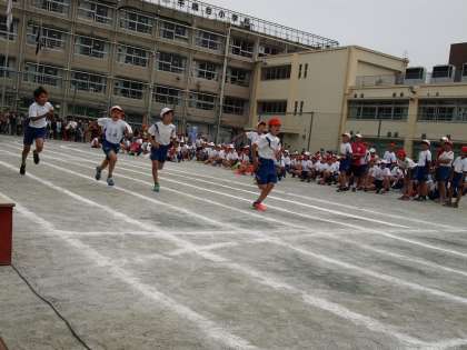 千歳台小学校の運動会です。来賓席前に来た児童たちは、テントの後ろに視線を送ります。家族の方を一生懸命探していて見つけると手を振り、本当にうれしそうに笑顔がはじけます。小中学校の発達段階の違いを感じた一瞬です。
