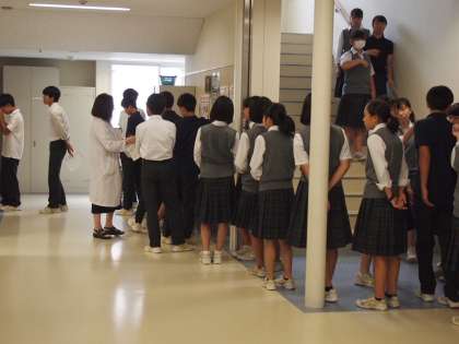 今日は眼科検診です。8時45分から18クラス(およそ650人)をすべて午前中で終わらせるためには、次のクラスへの「連絡」と保健室までの「素早い移動」そして保健室前での「静寂の待機」が必要です。校医の先生の集中力にも脱帽ですが、受診するフナキボ生も完璧です!