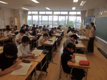 1年生の教科「日本語」の授業の様子です。金曜の1時間目ですが、どのクラスも真剣に取り組んでいます。(田村真)